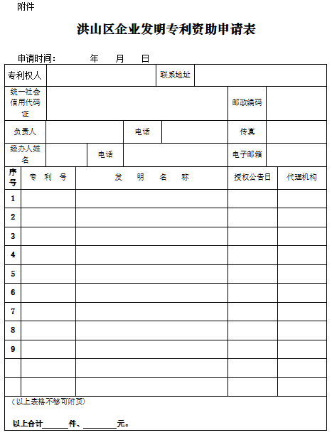 1、洪山區(qū)企業(yè)發(fā)明專利資助申請(qǐng)表(附件);