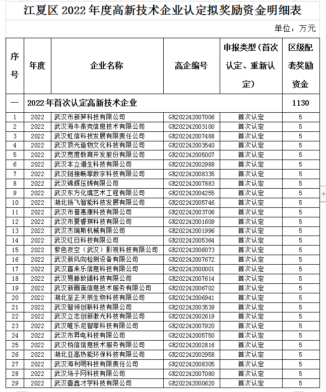 【公示】區(qū)科經(jīng)局關(guān)于江夏區(qū)2022年度 高新技術(shù)企業(yè)認(rèn)定區(qū)級配套獎勵資金的公示